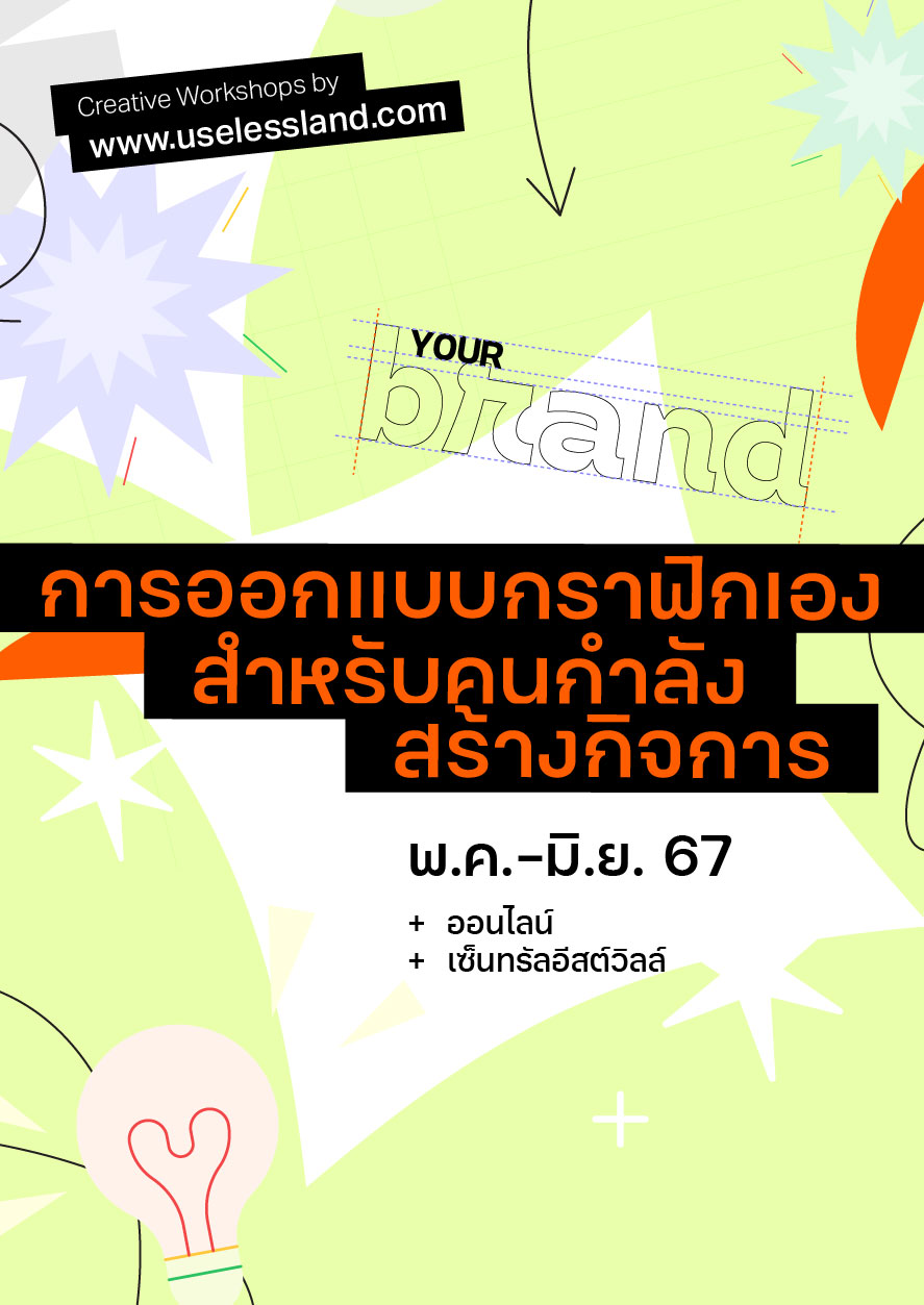 - ฟรีเวิร์กชอปการออกแบบกราฟิกเองสำหรับคนกำลังสร้างกิจการ รวม 2 ที่นั่ง