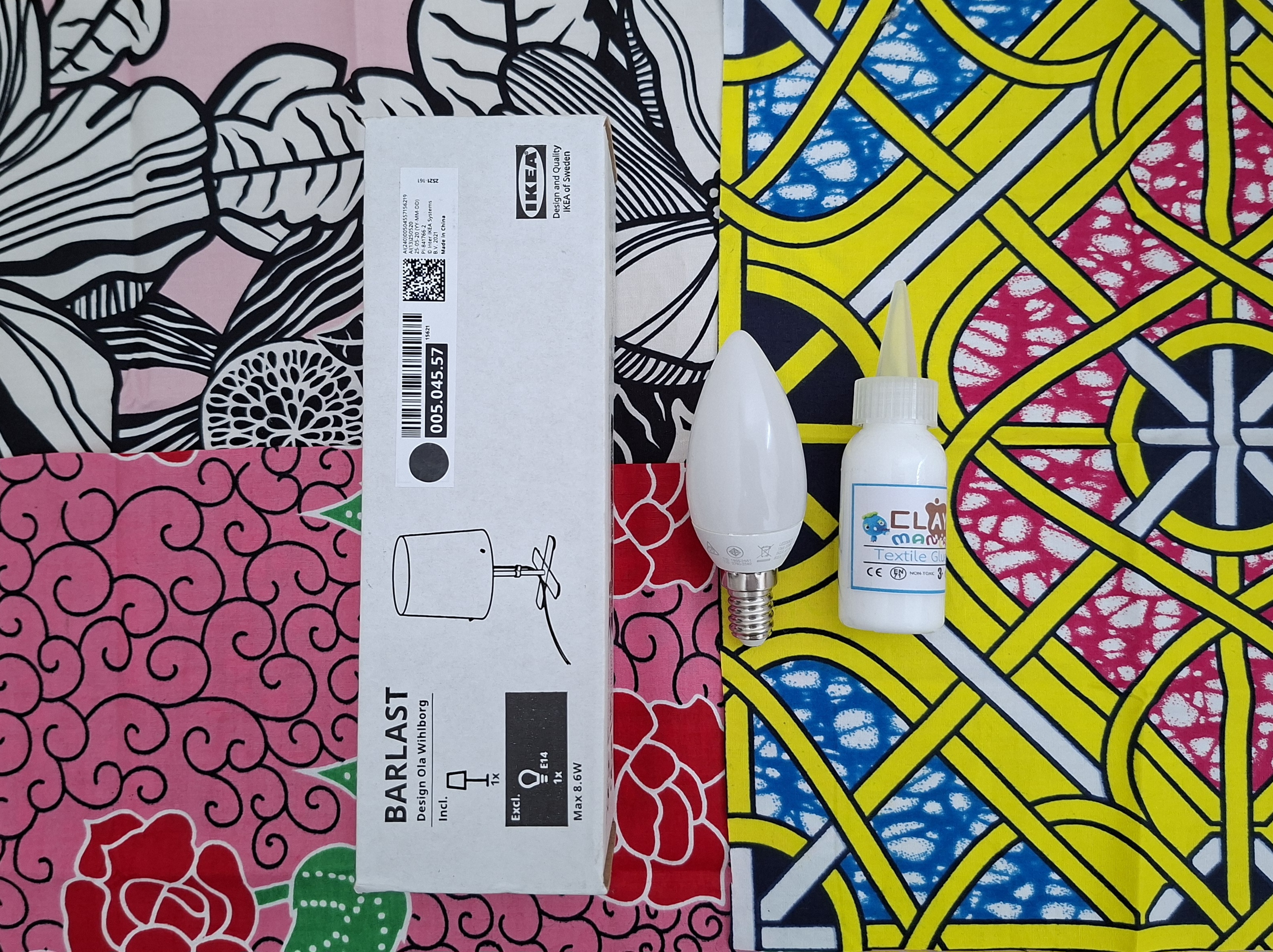 คู่มือการทำคอลลาจผ้า, เล่ม Creative Journey, ผ้าลวดลายต่าง ๆ , กาว, โคมไฟ, หลอดไฟ