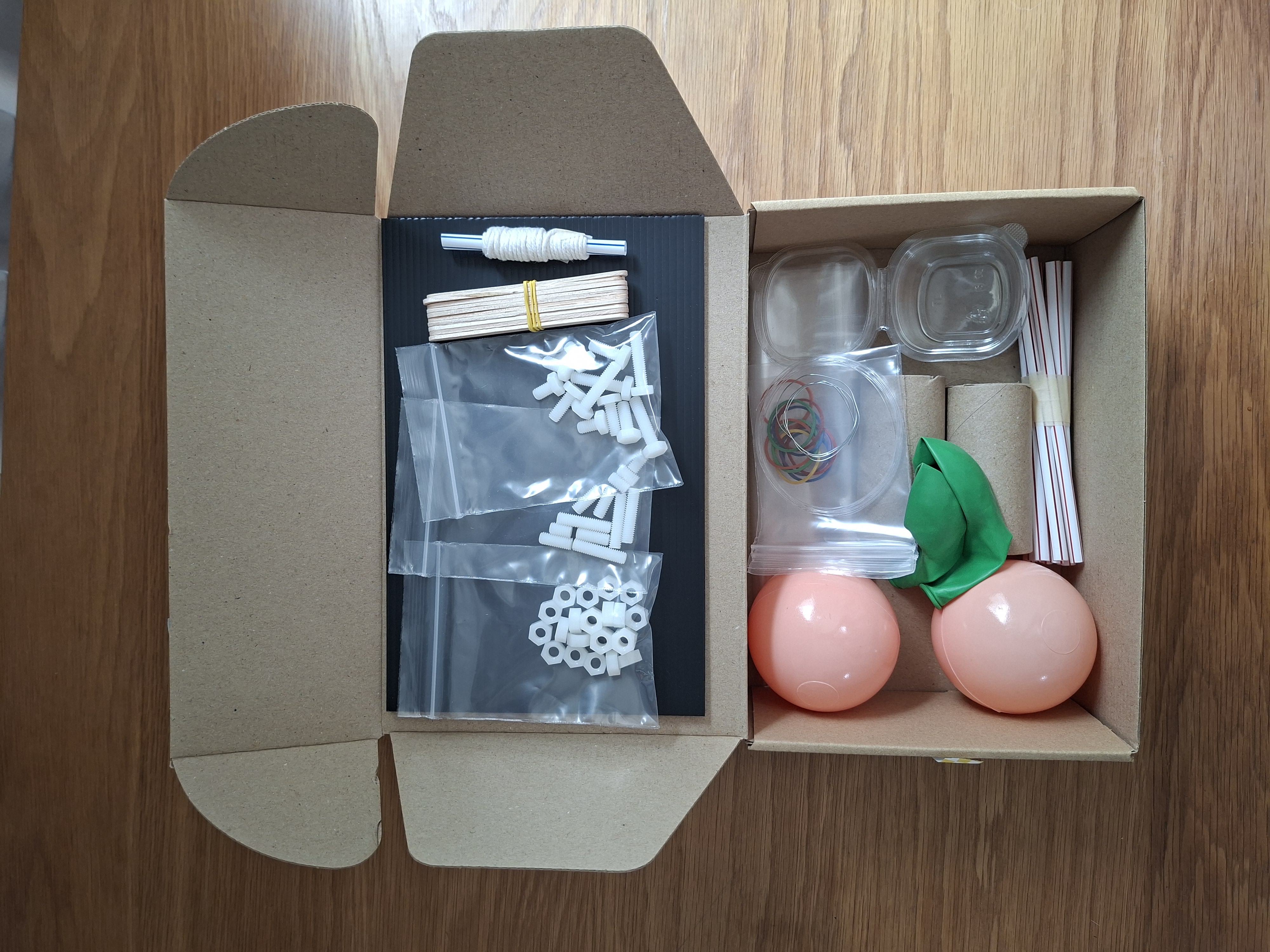 - ฟิวเจอร์บอร์ด, ไม้ไอติม, ลูกบอล, แกนกระดาษ, ยางรัด, น็อต, สตัด, สายเอ็น, เชือก, ถุงแกง, ลูกโป่ง, ถ้วย, ลวด, หลอด, ถ้วยน้ำจิ้ม กระดาษปูโต๊ะ